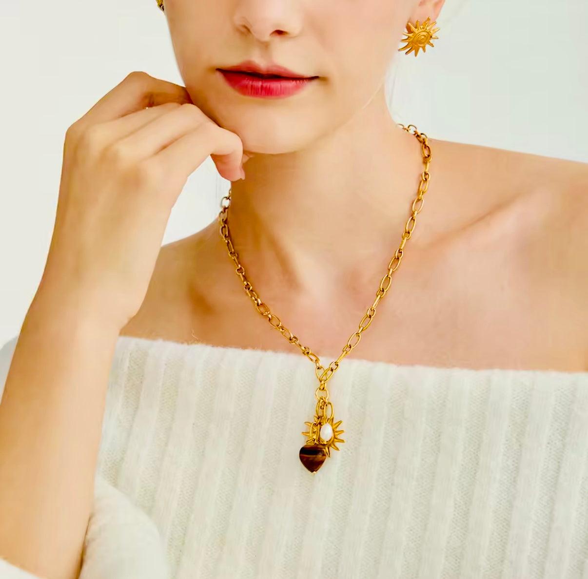 Material: Stainless Steel, Tyger Eye Heart Charm